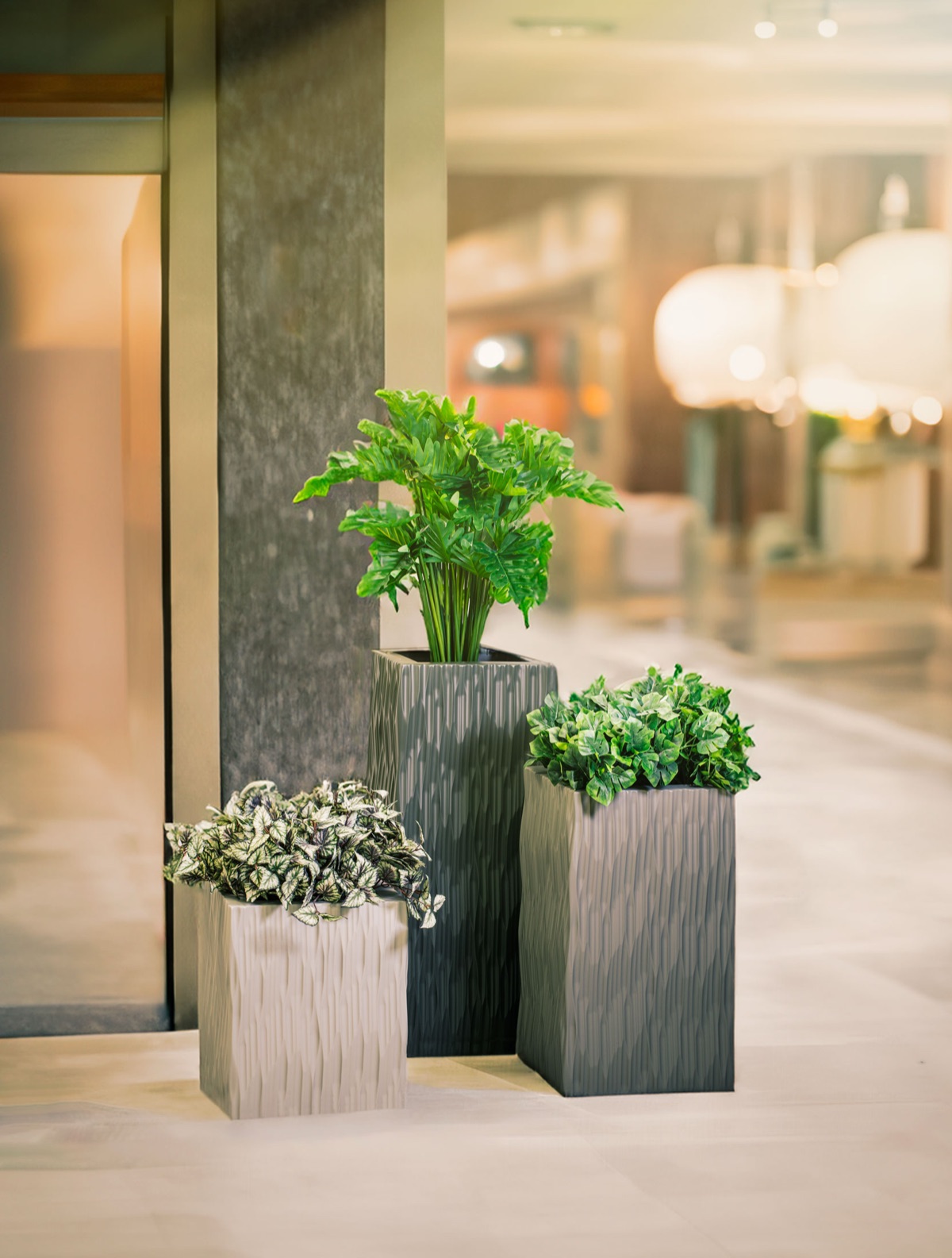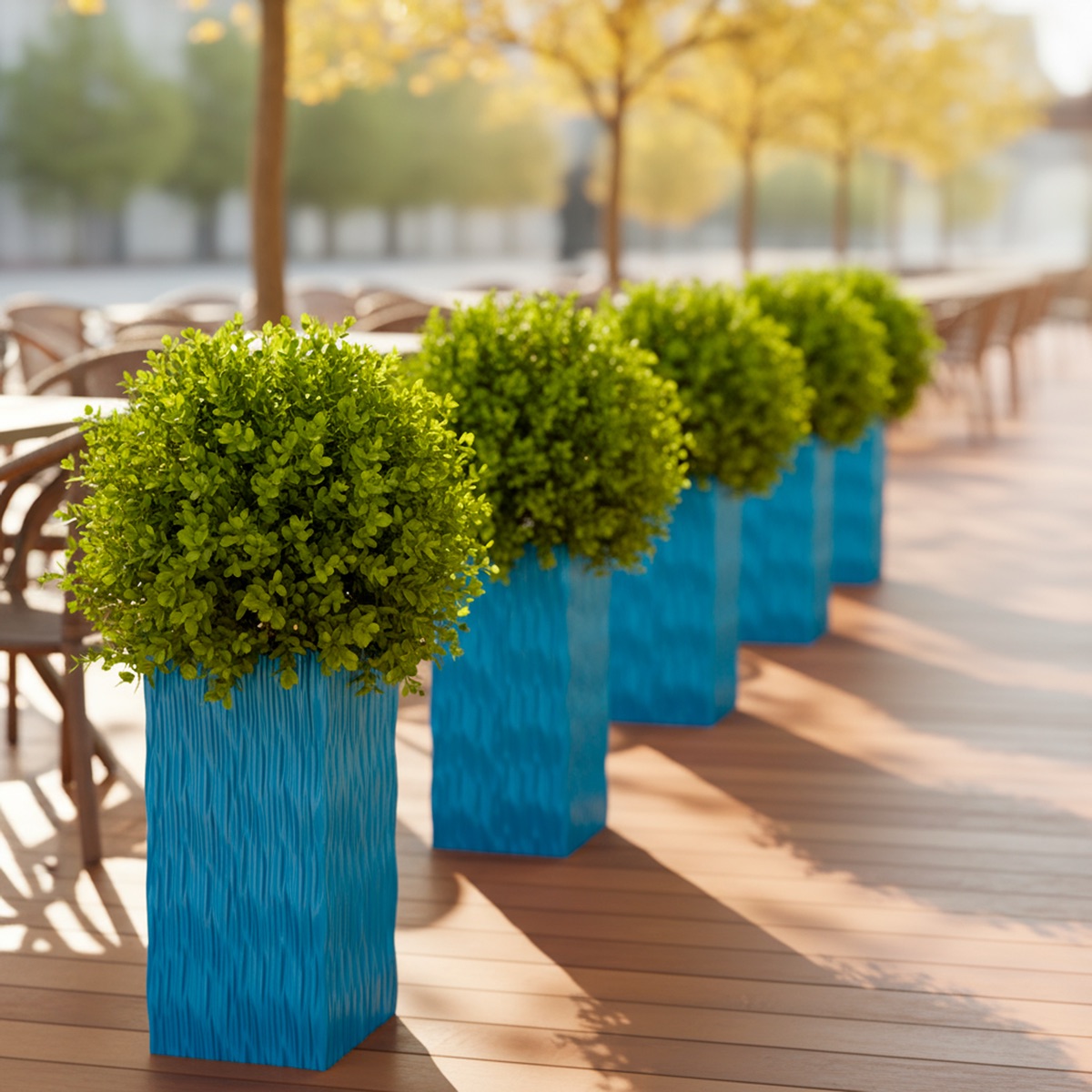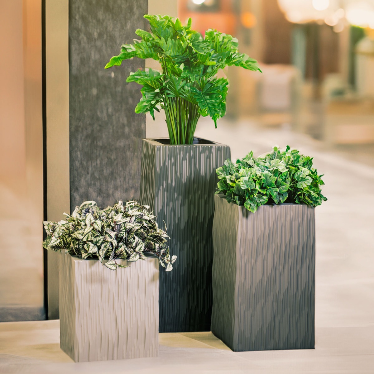 The FLTS1 Flexi Chrome planter trough by Europlanters offers flexible chrome-finish container solutions for commercial use.